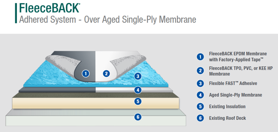 System Option #2 – Fleeceback over Aged Single Ply (EPDM & TPO)