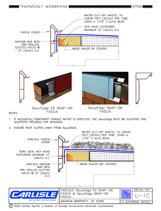 1) Detail U-1C: CARLISLE Securedge EX SNAP-ON FASCIA & SecurEdge SNAP-ON FASCIA